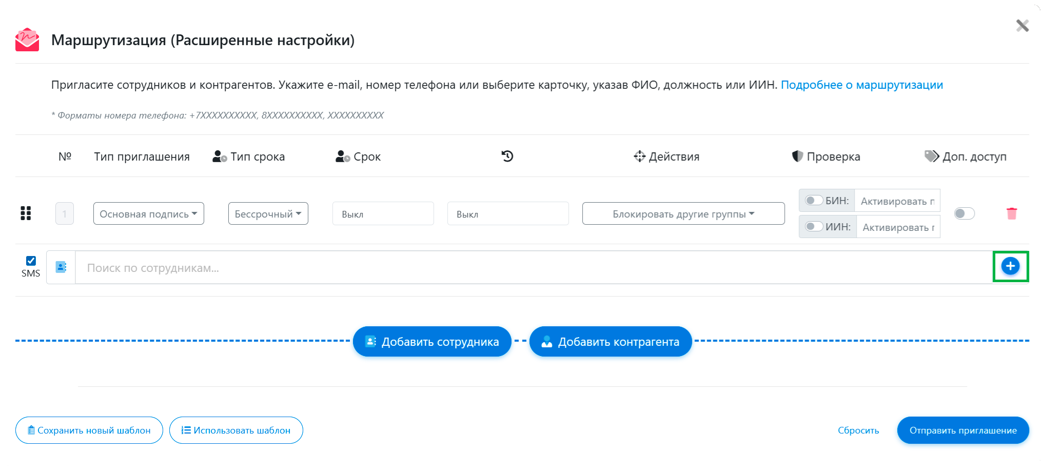 Здесь можно добавить участников подписания — выбрав их из заранее добавленных реквизитов либо создав новую карточку контрагента.