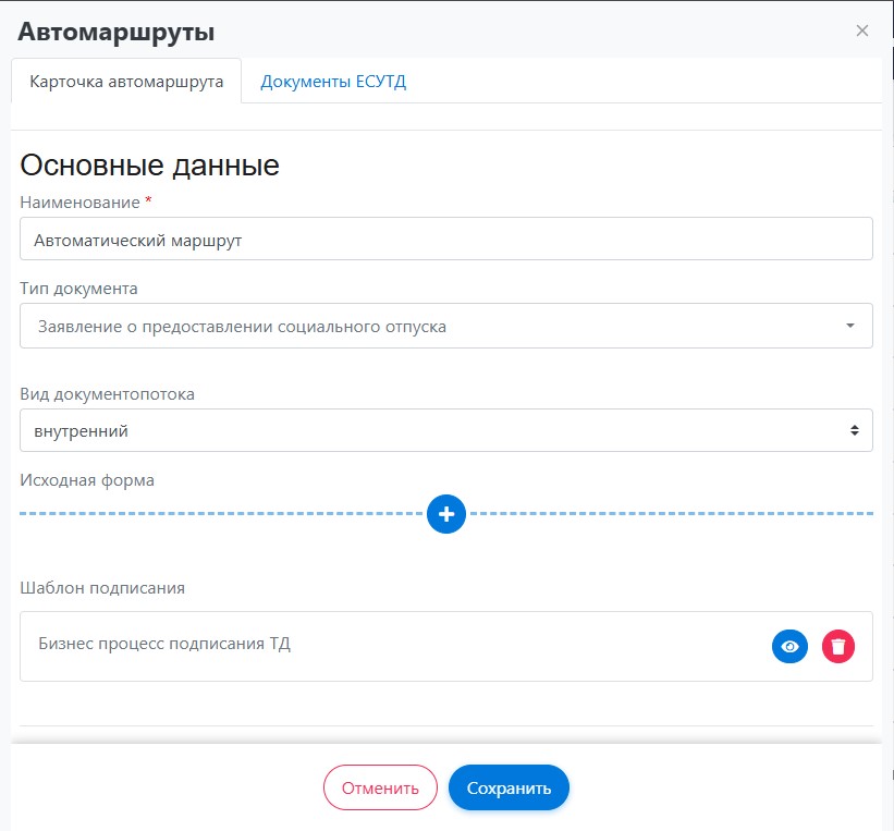 Автоматические маршруты привязаны в нашей системе к типу документа, виду документопотока и пользовательскому шаблону (опционально). То есть, при заполнении данных о документе. Вы можете настроить систему таким образом, чтобы она автоматически отправила документ на подписание уполномоченным лицам. Лица могут быть заданы жестко (только конкретная почта) или согласно организационной структуре компании. Рассмотрим подробнее.