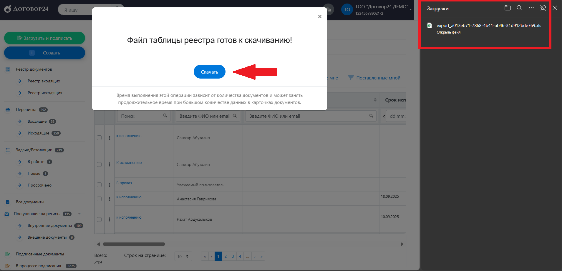 Когда файл таблицы реестра будет готов к скачиванию нажмите кнопку «Скачать» после чего реестр скачается на ваше устройство