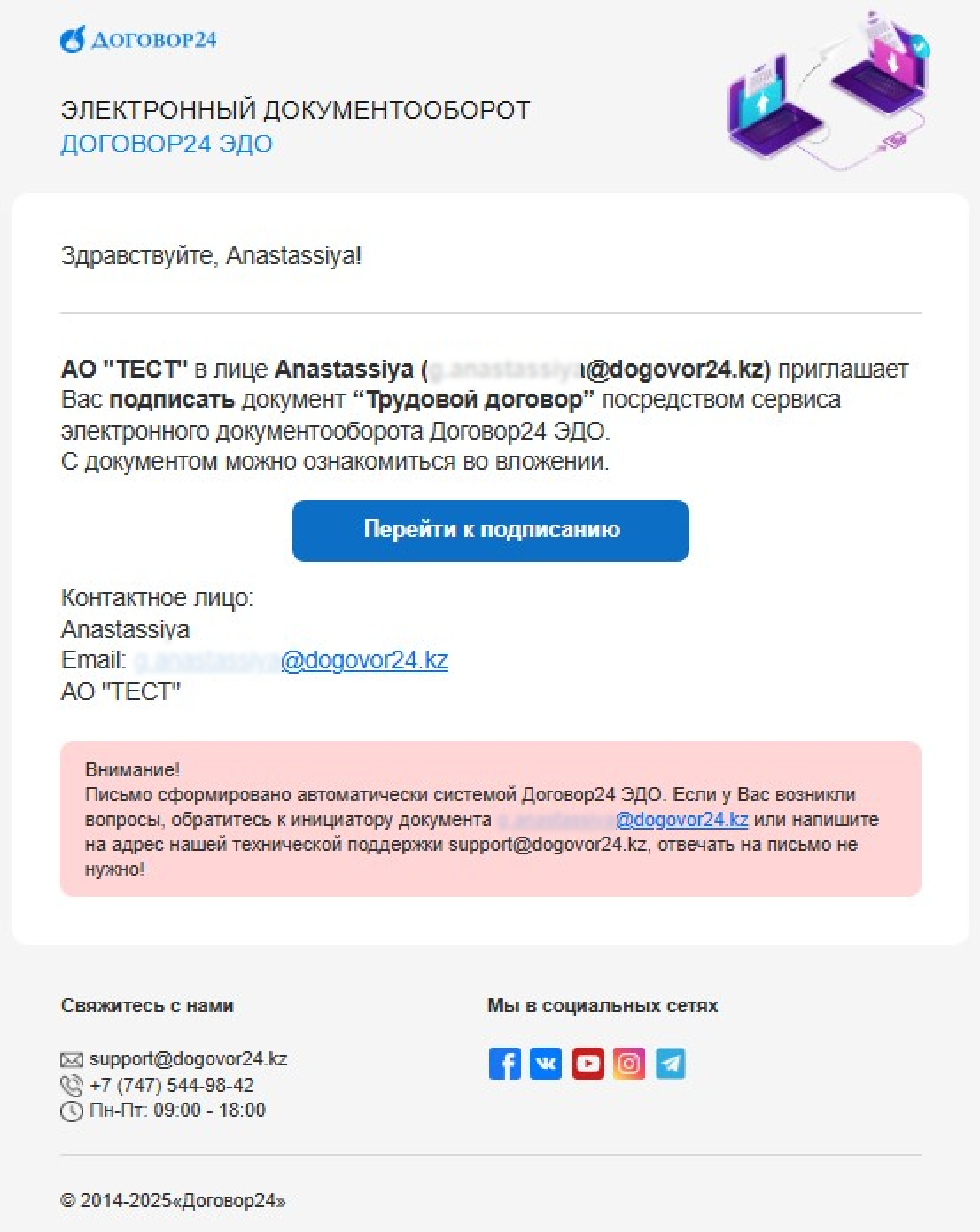 - Если письмо выглядит так, нажмите «Перейти к подписанию» и зарегистрируйтесь/авторизуйтесь.