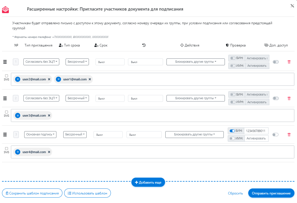 3. Готово. Настройки маршрута из шаблона успешно применятся к документу. Так же Вы можете добавить дополнительных участников, если есть необходимость.